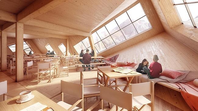 Designs for the incredible lopsided hideaway, which will sit among the high peaks of Slovakia's Tatra Mountains like a gigantic fallen meteor, were submitted by Czech architects Atelier 8000 for an international design competition.
