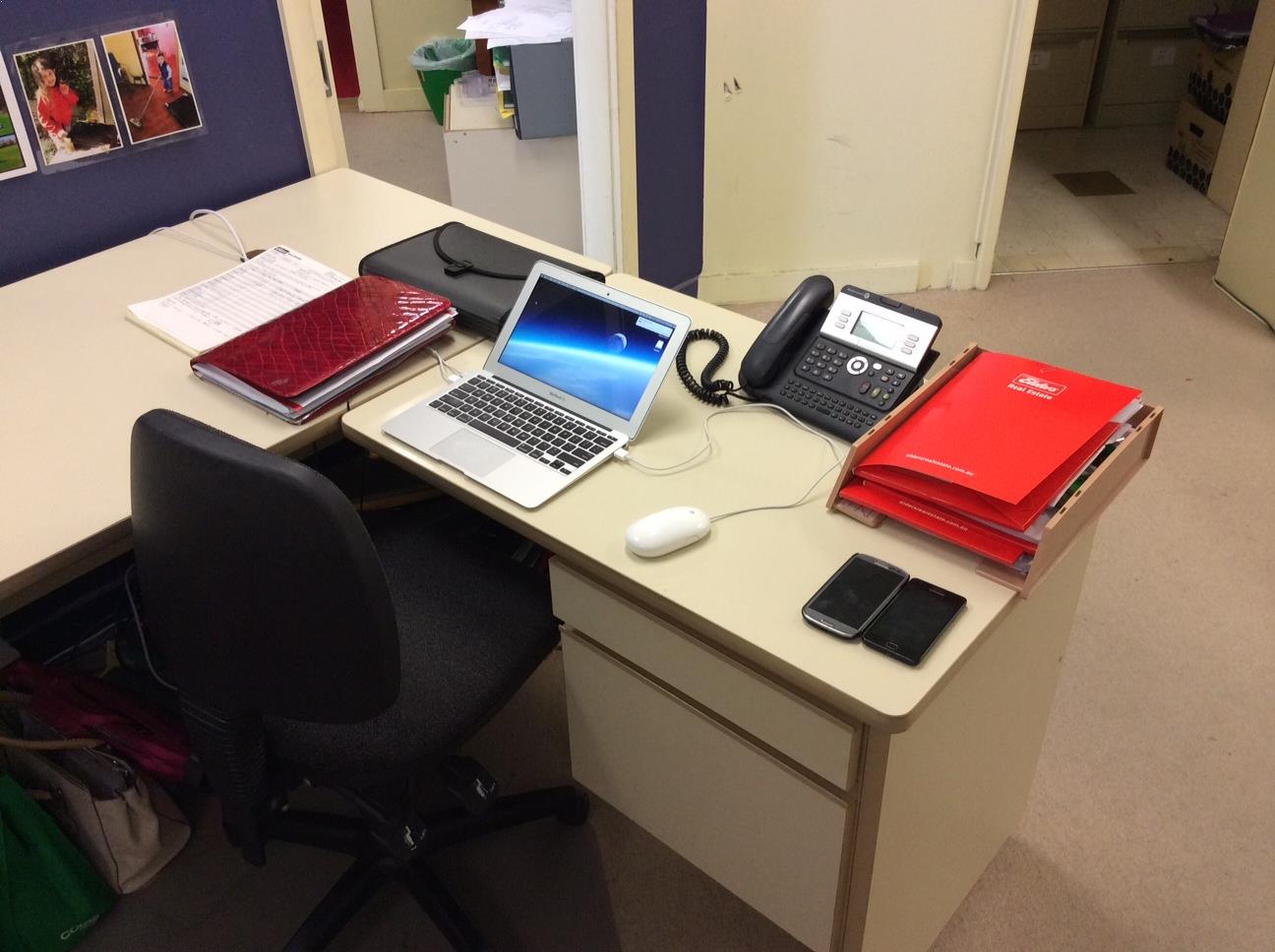 So I did the arm sweep. You know, where you roll up your sleeve, lay your forearm flat on your desk and sweep everything off the end and into the bin (don't worry, I salvaged the leases, the keys and the reports first – even found my iPad and phone). Literally. Just did the insta clean-up. Reorganised my work space, put away all my exhibitions packs, and created suspension files for all my active work. Even got rid of my enormous monitor, keyboard and hard drive (I now bring my own 11" MacBook Air to and from work).
