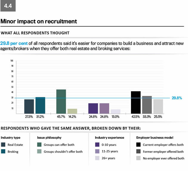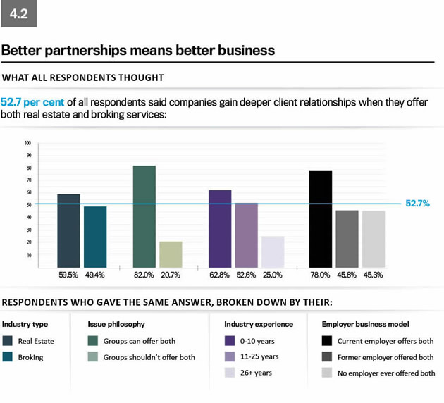 The survey found that only 9.1 per cent of respondents believe that businesses can never benefit from offering both real estate and broking services.